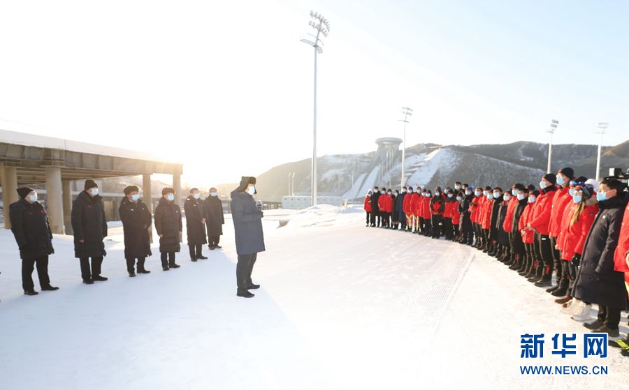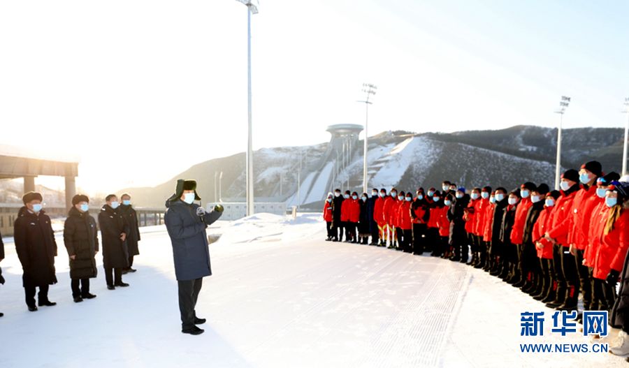 在國(guó)家冬季兩項(xiàng)中心看臺(tái),習(xí)近平觀看了冬季兩項(xiàng)越野滑雪和射擊運(yùn)動(dòng)員接力訓(xùn)練情況,并看望慰問(wèn)國(guó)家冬季兩項(xiàng)、跳臺(tái)滑雪隊(duì)運(yùn)動(dòng)員、教練員和張家口賽區(qū)運(yùn)行保障團(tuán)隊(duì)、建設(shè)者代表。習(xí)近平親切地對(duì)大家說(shuō),我這次來(lái)考察北京冬奧會(huì)、冬殘奧會(huì)籌辦情況,也是在牛年春節(jié)前來(lái)看望大家。大家都在為辦好一屆成功的冬奧盛會(huì)而努力,運(yùn)動(dòng)員在刻苦訓(xùn)練,建設(shè)單位和建設(shè)者、保障團(tuán)隊(duì)兢兢業(yè)業(yè),成功打造了一批世界一流的精品工程,大家的奮斗精神、奉獻(xiàn)精神令人感奮。習(xí)近平強(qiáng)調(diào),北京冬奧會(huì)、冬殘奧會(huì)所有場(chǎng)館建設(shè)提前一年完成,我國(guó)很多冰雪項(xiàng)目在兩年多時(shí)間里實(shí)現(xiàn)從無(wú)到有,有的項(xiàng)目達(dá)到了世界先進(jìn)水平,充分體現(xiàn)了黨的領(lǐng)導(dǎo)和舉國(guó)體制、集中力量辦大事的制度優(yōu)勢(shì)。