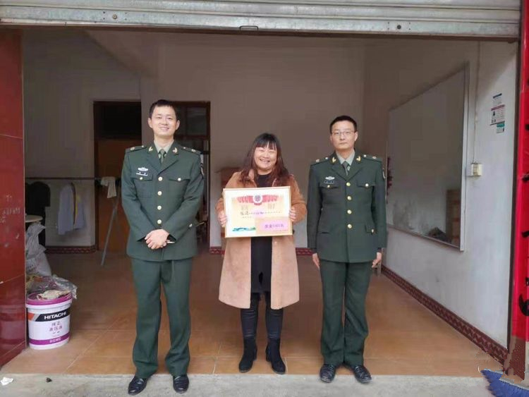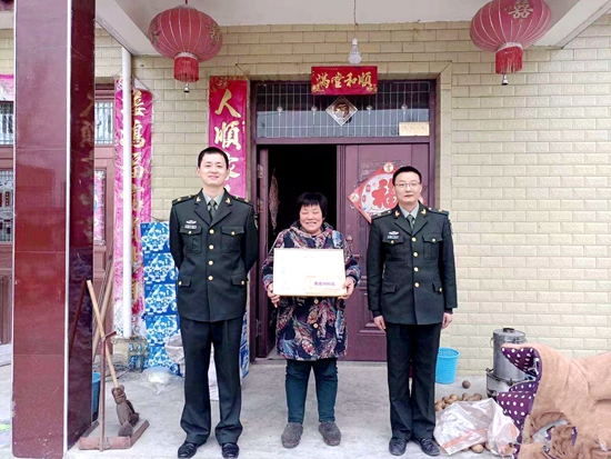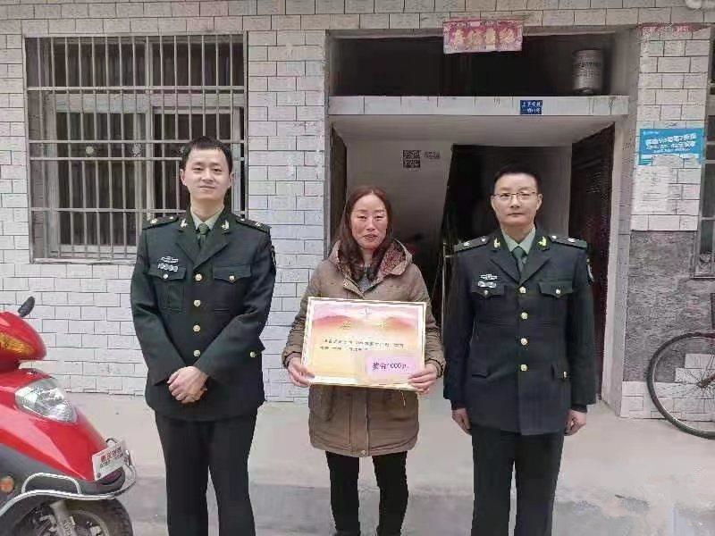 為獲得優秀軍士的楊鑫煜的家屬送上喜報和獎金