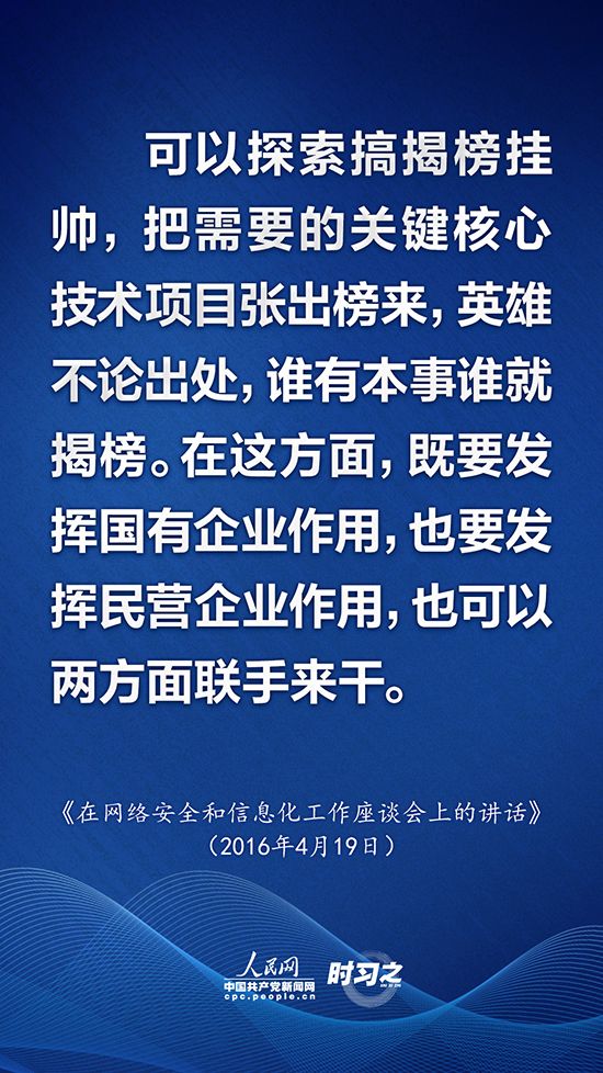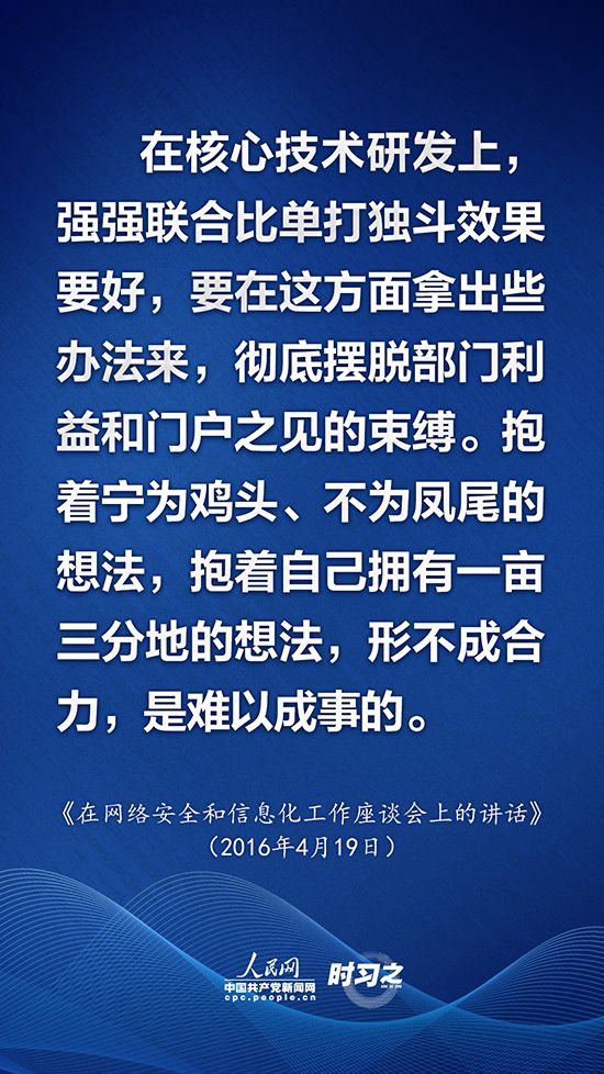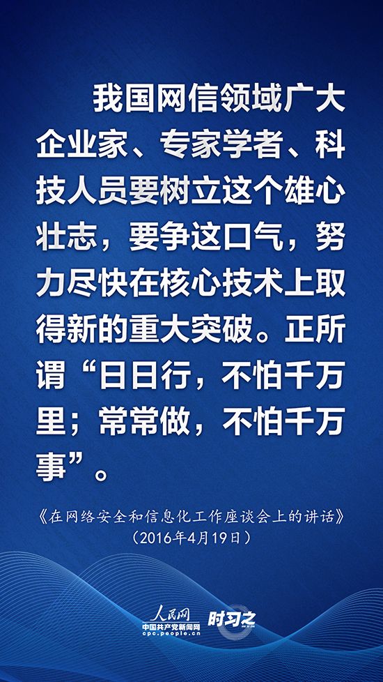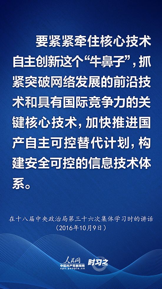黨的十八大以來,以習(xí)近平同志為核心的黨中央從進(jìn)行具有許多新的歷史特點(diǎn)的偉大斗爭出發(fā),重視互聯(lián)網(wǎng)、發(fā)展互聯(lián)網(wǎng)、治理互聯(lián)網(wǎng),統(tǒng)籌協(xié)調(diào)涉及政治、經(jīng)濟(jì)、文化、社會(huì)、軍事等領(lǐng)域網(wǎng)絡(luò)安全和信息化重大問題,作出一系列重大決策、實(shí)施一系列重大舉措,推動(dòng)我國網(wǎng)信事業(yè)取得歷史性成就,走出一條中國特色治網(wǎng)之道。人民網(wǎng)·中國共產(chǎn)黨新聞網(wǎng)“時(shí)習(xí)之”欄目梳理了《習(xí)近平關(guān)于網(wǎng)絡(luò)強(qiáng)國論述摘編》中有關(guān)“加速推動(dòng)信息領(lǐng)域核心技術(shù)突破”的10句金句,與您共同學(xué)習(xí)。