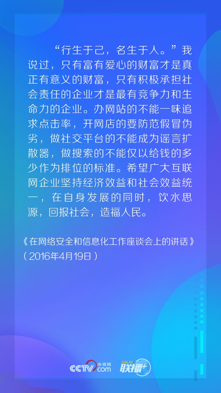 近日,《習(xí)近平關(guān)于網(wǎng)絡(luò)強(qiáng)國論述摘編》一書在全國發(fā)行,其中總書記的自述,令我們感受到他對如何營造一個風(fēng)清氣正的網(wǎng)絡(luò)空間、建設(shè)網(wǎng)絡(luò)強(qiáng)國的深邃思考。央視網(wǎng)《聯(lián)播+》摘錄書中總書記的自述,與您一起學(xué)習(xí)領(lǐng)悟總書記的互聯(lián)網(wǎng)思維。