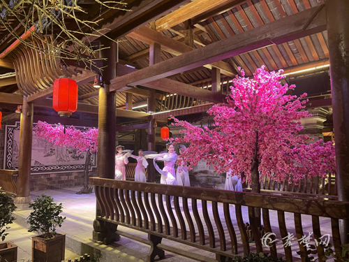 夜月一簾幽夢,千古房陵柔情。房縣西關印象的夜景璀璨迷人,置身其中,感受時光倒影,品味詩風唐韻。1月20日晚,記者通過航拍角度看西關印象夜景,如同夢境,闖入眼簾的是震撼美麗的不夜城。雖然時值大寒節氣,但西關印象不夜城的熱度依舊,游人如織。美輪美奐的美景,讓人仿佛穿越時光,敲開復活的古建筑,回到夢幻大唐,陶醉于老街舊景。占地面積47.01公頃、總投資26億元的房縣西關印象于2020年9月底開街運營以來,致力于打造詩意畫卷的人文街區。