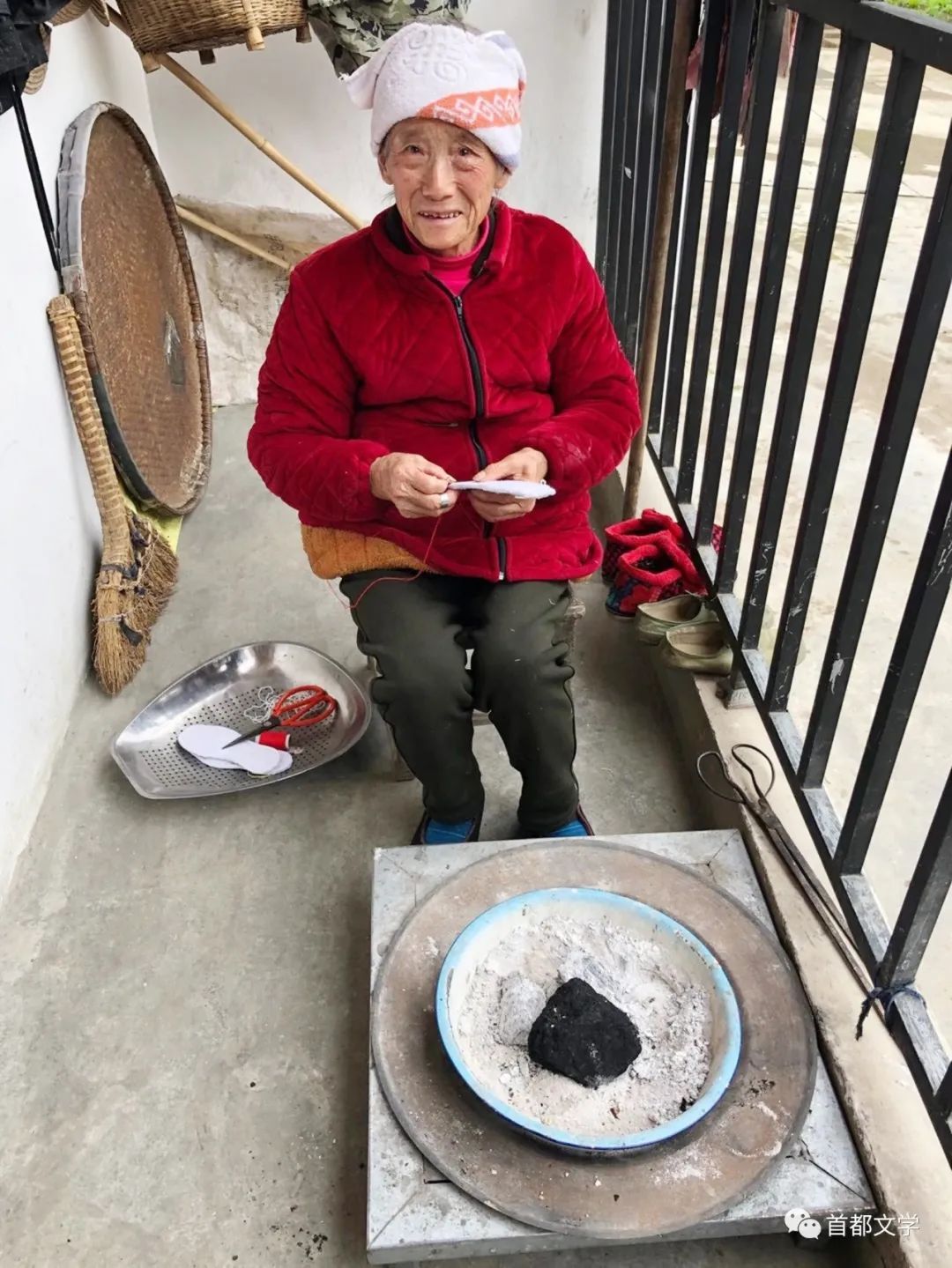 小村不大,出乎意料地整潔清爽。雙層式排樓鱗次櫛比,前庭后院有花壇、水池、假山,幾個(gè)年輕媳婦推著小車抱著娃兒,幾位老人不緊不慢地散步談天。我們隨意走進(jìn)一農(nóng)戶家,幾個(gè)婦女圍攏一塊兒正有說有笑。在我們一群外來人的動員和示意下,二位六十多一位七十多的老婦人唱起了民歌。歌詞似與《詩經(jīng)》內(nèi)容有關(guān):“一對鴛鴦前世修,好似關(guān)關(guān)云睢鳩。關(guān)睢好合千年美,今日君子應(yīng)好逑。”翹著二郎腿,手里夾著煙卷,輕松自然落落大方,看不出一絲難為情。在我的老家東北,因?yàn)樘旌荒曛锌傆写蟀霑r(shí)間在室內(nèi)度過,男人女人一樣,都養(yǎng)成了抽煙的習(xí)慣。南方女性吸煙卻是極少的,即使有也是為了應(yīng)景或湊趣。我好奇的提問,抽煙是為了御寒嗎?她們回答并不是的。九道梁地勢偏高,氣候適合種植煙葉,小時(shí)候幫家里干活,背煙葉到集市上叫賣,路上無聊了就抽一支,一來二去的便抽慣性了。我又問,唱民歌跟誰學(xué)的?打小就聽大人們唱,喝酒唱,下地干活唱,逢有喜喪事唱,識字不識字的都能唱上大幾十首呢。在房陵豐腴神奇的版圖上,或許歷史原因,民歌傳唱比較普遍,山歌、田歌、燈歌、風(fēng)俗歌等各種詞牌民歌多達(dá)上千首,歌手們都未經(jīng)過正規(guī)訓(xùn)練,卻自有一種泥土的芬芳。民間藝術(shù)的作用無外乎傳遞心靈與情感,能長期在單調(diào)乏味的生活中,將瞬間的場景與感動,以民歌形式表現(xiàn)和固定下來,多年以后仍能清晰地觸摸到它,是一件極不容易也是極其美好的一件事情。在遷建樓房的一戶涼臺上,見一對老人,安靜地圍著火盆烤火。一問,都已年過八旬,看上去也不過七十來歲。老奶奶耳背,一針一線地納鞋底兒,抬頭望望我,又沉浸到自己的世界里。他們享受扶貧政策,從更遠(yuǎn)更大的山里遷移出來,生活條件比過去好了許多。問到子女時(shí),大爺神情卻黯淡下來:兩兒一女,大兒子幾年前出車禍去逝了,二兒子去年生一場大病也走了,身邊一個(gè)女兒已遠(yuǎn)嫁四川。我不禁對兩位老人生出深深的同情與尊重,懷揣著被天災(zāi)人禍的意外傷害,卻是這般安然與堅(jiān)韌!很想安慰幾句,又不知說什么好。在大爺布滿皺紋的滄桑的臉上,在老奶奶刺繡鞋墊那雙蒼老僵硬的手指上,我看到了中國農(nóng)民那種“全皮櫟”大樹一般的、發(fā)自骨髓中的隱忍與堅(jiān)強(qiáng)。