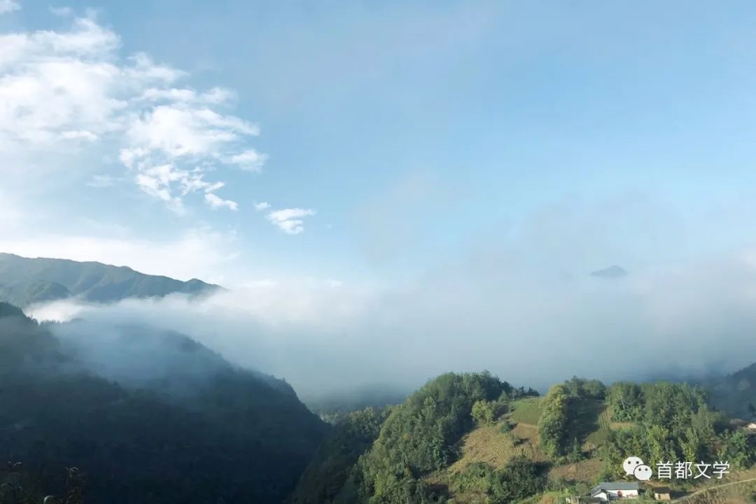 中國的詩歌文化浩浩殤殤,詩經(jīng)文化的源頭,憑什么就出自偏遠(yuǎn)蠻荒的鄂西北之地呢?這就不能不提到一個(gè)人的名字“尹吉甫”——周宣王時(shí)杰出的政治家、軍事家、哲學(xué)家,然而真正讓他名揚(yáng)天下的卻是詩人身份。宣王重禮敬樂,封吉甫為樂師,定期采歌獻(xiàn)歌,沒想到,一個(gè)輔佐朝政的軍師,采集民歌竟做的那么出色,不愧是文能安邦武能治國的賢臣。周宣王親命大臣為其作頌“文武吉甫,天下為憲”、“吉甫作誦,穆如清風(fēng)”。而尹吉甫作為我國第一部詩歌總集的采集和編纂者,比孔子編集《詩經(jīng)》整整早了五百年。那么,出生于房陵青峰腳下松林埡的尹吉甫,將故里作為采風(fēng)的重點(diǎn),就不言而喻了。十幾億年前,位于青峰斷裂帶大峽谷上的青峰、九道梁、神農(nóng)架陽日灣地質(zhì)斷裂,海洋升陸地,平原變高山,這種乾坤倒轉(zhuǎn)滄海桑田的巨變,產(chǎn)生最古老的故事、最賢德的人才、最優(yōu)美的民歌,也是天人感應(yīng)風(fēng)水暗合的必然吧?回首側(cè)望,又一次被眼前景象驚奇:云霧濤濤,綿白如瓷;遠(yuǎn)山含翠,峰露尖尖;太陽的光芒,刺透藍(lán)天白云,刺透白霧莽帶,溫柔地投射到山澗、叢林、農(nóng)舍和寂靜無聲的原野,這與來時(shí)的路上半山紅楓一路杏黃,又是一番不同的景致啊。所有人都走下車,面對浩波淼杳的云海,癡神凝望,靜默無言。誰都不想說話,誰都不能說話,唯恐人類的聲音驚擾了秘園仙境,驚破這不期而至的自然天賴。