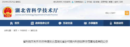 今日房縣網(wǎng)訊 近日第一批湖北省鄉(xiāng)村振興科技創(chuàng)新示范基地認定名單出爐