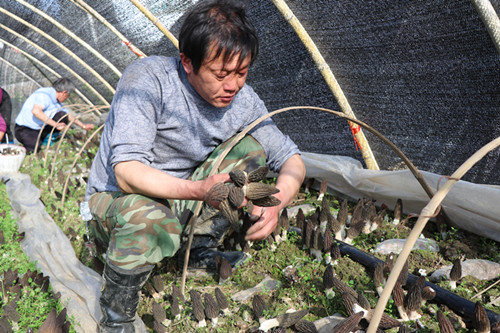 說干就干,他坐的是最便宜的車,路上吃的是方便面,多次到神農(nóng)架松柏鎮(zhèn)種植戶家中拜師學(xué)藝,學(xué)成歸來就在自家的1.7畝水田開始摸索試種羊肚菌,第二年春天,看著大棚里一棵棵羊肚菌穿破土層、長勢不錯,鄧平喜出望外,一顆懸著的心終于落了下來。當(dāng)年畝產(chǎn)值均可達(dá)3.6萬元,除去苗種費用等,每畝純收入達(dá)3萬余元。?