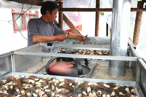 “我們聽說這里有羊肚菌到就過來看看,也買上一些,它的藥用價值和養(yǎng)生都好,燒湯、燉肉兩樣都很好。”鄰村村民劉大爺說:“新鮮羊肚菌,足有成年人半只手掌大小。烘干后尺寸縮小一半,但香味會更加濃郁,保存及銷售的周期也延長了。”鄧平高興地告訴筆者,“我們這段時間采摘的羊肚菌一部分賣給本地的餐飲店,一部分通過電商、微信等平臺銷售到上海、廣東、陜西等地,目前已采摘三茬,銷售了300多公斤,收入6萬多元。當(dāng)天沒有賣完的就制作成干貨。”