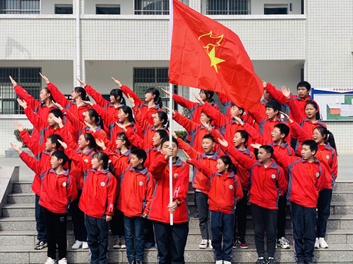 儀式上,老團員向新團員頒發并佩戴團徽,新團員入團宣誓,團員代表現場作了發言。在五星紅旗和團旗的見證下,15名品學兼優的學子走進了共青團的大家庭,共同譜寫青春的華章,擁抱青春的時代。
