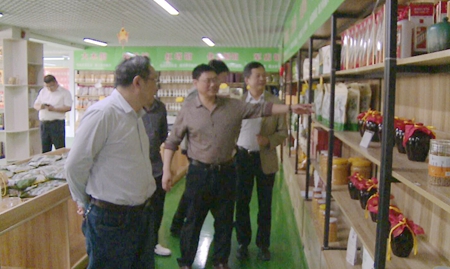 考察團(tuán)在扶貧832·房縣消費(fèi)扶貧專館了解特色農(nóng)產(chǎn)品生產(chǎn)銷售情況