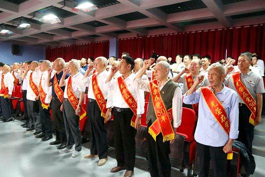頒發儀式在雄壯嘹亮的國歌中拉開帷幕。在隆重熱烈的氣氛中,蔡賢忠領誓,帶領全體人員重溫入黨誓詞。蒲曉順、馬奇春、何兆才、肖道滿、譚榮樂五位老黨員分別發言。他們娓娓道來自己的初心故事,抒發語重心長的政治祝福,表達著滾燙的赤子之心和感恩之情,給在場的黨員干部上了一堂直抵人心的“信仰黨課”。