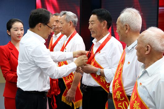 今日房縣網訊 記者 劉鵬飛 報道:在中國共產黨成立100周年即將到來之際,6月18日上午,我縣舉行“光榮在黨50年”紀念章頒發儀式,為30名黨齡達到50周年的老黨員代表頒發“光榮在黨50年”紀念章。縣委書記蔡賢忠主持儀式并發表講話,縣委副書記肖大有,縣委常委、組織部部長高勇,縣委常委、縣委辦主任成坤參加頒發儀式。