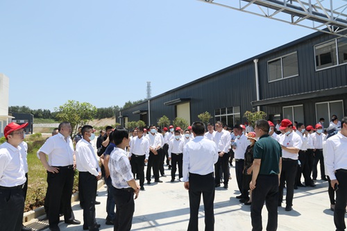 隨后,與會(huì)人員來到碧藍(lán)環(huán)保科技項(xiàng)目建設(shè)現(xiàn)場(chǎng),詳細(xì)了解項(xiàng)目整體規(guī)劃、廠房建設(shè)、工藝流程等情況。
