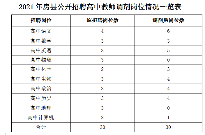 2021年房縣面向社會(huì)公開招聘高中教師報(bào)名工作已經(jīng)結(jié)束,其中:物理3個(gè)崗位、地理3個(gè)崗位無(wú)人報(bào)名、計(jì)算機(jī)3個(gè)崗位1人報(bào)名。根據(jù)《2021年房縣面向社會(huì)公開招聘高中教師公告》:“此次公開招聘崗位不受開考比例的限制。對(duì)無(wú)人報(bào)考的崗位,經(jīng)招聘領(lǐng)導(dǎo)小組批準(zhǔn)將該崗位計(jì)劃調(diào)劑到報(bào)考人數(shù)較多的崗位。”經(jīng)招聘領(lǐng)導(dǎo)小組同意,將物理、地理各空缺崗位3個(gè)、計(jì)算機(jī)空缺崗位2個(gè)調(diào)劑到下列崗位: