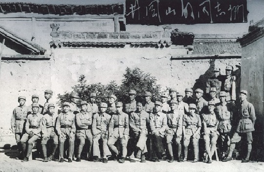 1927年10月,毛澤東率領湘贛邊界秋收起義的部隊到達江西寧岡古城。毛澤東在這里主持召開前委擴大會議,總結起義經驗教訓,討論在井岡山建立革命根據地問題。圖為毛澤東和參加湘贛邊界秋收起義的部分人員于1937年在延安合影