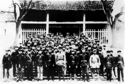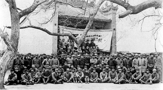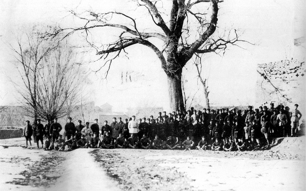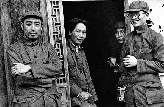 1937年,毛澤東、周恩來、博古(右一)等在延安