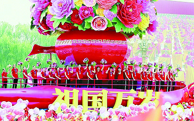 獲得世界杯冠軍的中國女排代表出現在2019年國慶節“祖國萬歲”的彩車上