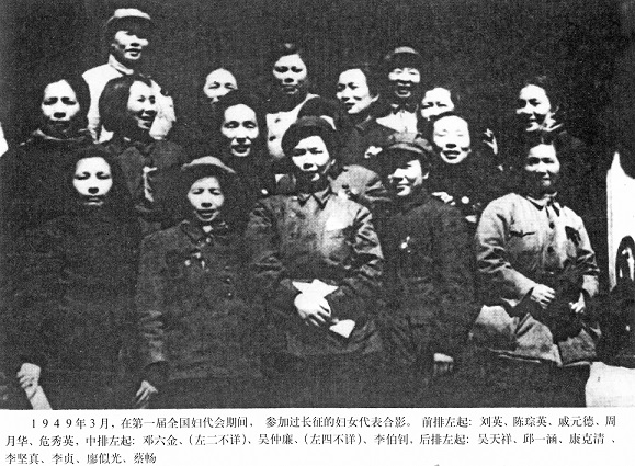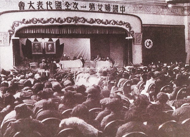 1949年3月24日至4月3日,中國婦女第一次全國代表大會在北平中南海懷仁堂召開。與會代表500余人,來自東北、華北、西北、華東、中原5個解放區,以及國統區、邊疆各省和海外各地。毛澤東接見全體代表,并為大會題詞:“為增加生產,為爭取民主權利而斗爭。”蔡暢致開幕詞。董必武代表中共中央致詞。這次會議是中國婦女有史以來第一次全國規模的盛會,為在黨的領導下凝聚各界婦女群眾奠定了基礎。