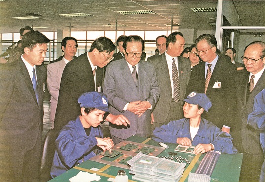 1995年12月6日,江澤民在深圳考察。圖為江澤民在深圳長城計算機集團公司視察