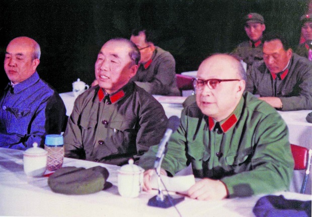 葉劍英在上海接見國防科工委負責人張愛萍(右一)、李耀文(右三)及錢學森(右四)