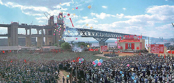 5萬多軍民參加南京長江大橋鐵路橋的通車典禮