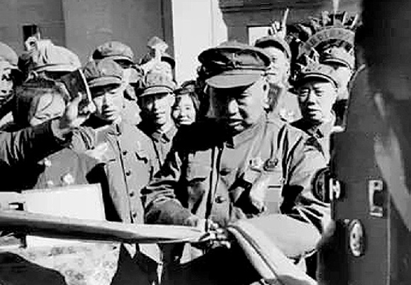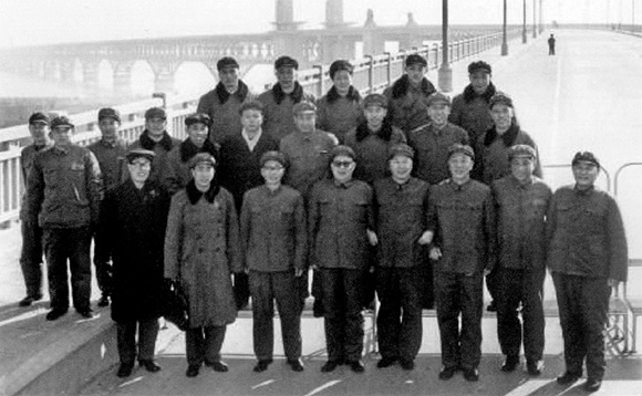 1975年11月,時任南京軍區副政委的王恩茂(前排右三)與解放軍三總部及南京軍區領導在南京長江大橋上合影