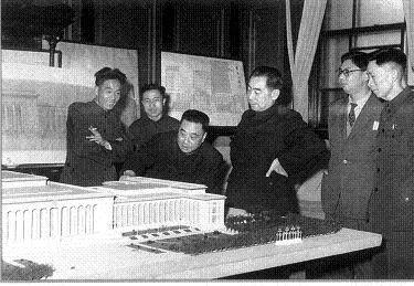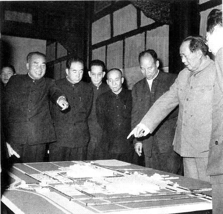 1958年,毛澤東、朱德、彭真等審查天安門廣場規劃模型