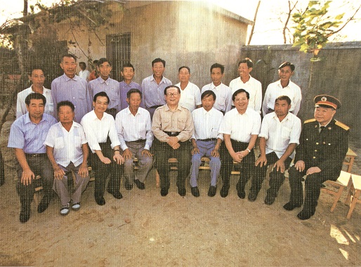 1998年9月22日,江澤民在小崗村農民嚴宏昌家的小院中,與當年發起“大包干”的部分農民合影