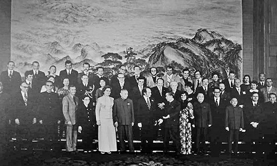 1973年10月11日,中國多位領導人與特魯多及夫人一行在北京合影