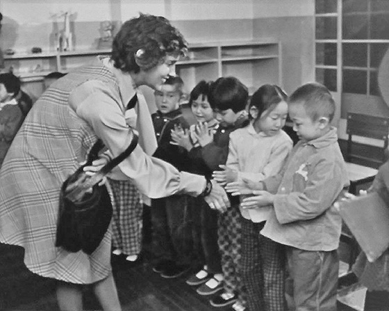 1973年10月12日,特魯多夫人參觀北京幼兒園