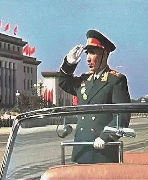 1959年10月1日,國慶10周年慶典上,林彪乘坐紅旗敞篷車檢閱三軍