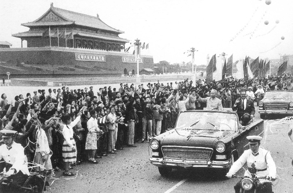 1961年9月22日,劉少奇乘坐紅旗轎車歡迎古巴總統訪問中國