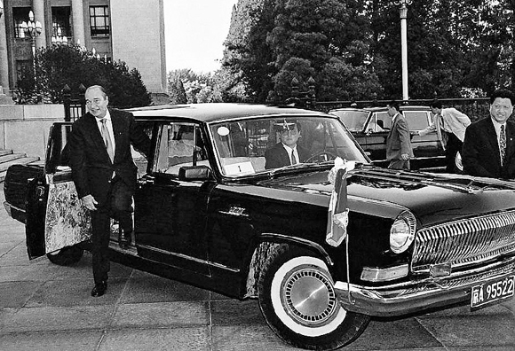 1997年5月15日,法國總統希拉克來華訪問,高興地乘坐紅旗轎車