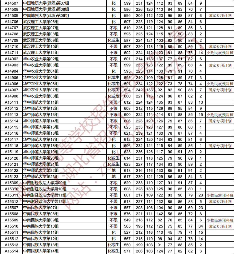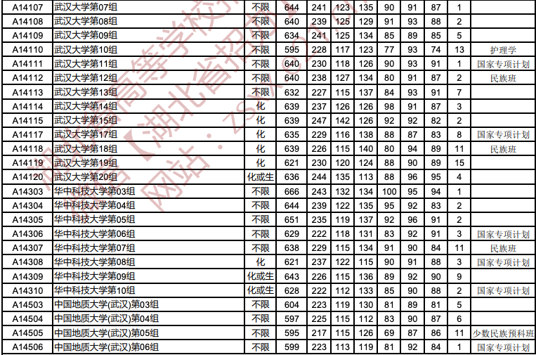 湖北省2021年本科普通批錄取院校(首選物理)平行志愿投檔線