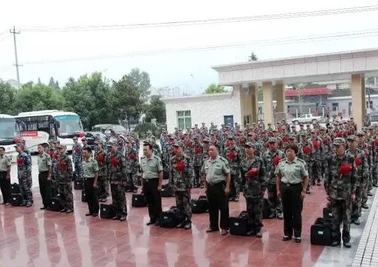 ▲土城鎮(zhèn)應(yīng)征青年與鎮(zhèn)武裝部長合影