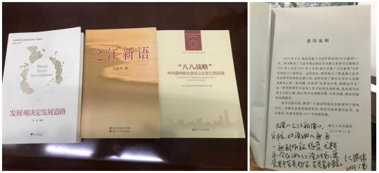 經(jīng)濟(jì)發(fā)展到一定階段,如果沒有創(chuàng)新,發(fā)展就會(huì)止步。談到浙江的創(chuàng)新發(fā)展,紀(jì)道清拿出了他在工作之余認(rèn)真閱讀的3本書,幾乎每一頁(yè)都做了清晰的標(biāo)注。這3本書分別是《之江新語》、《“八八戰(zhàn)略”與浙江的實(shí)踐》、《發(fā)展觀決定發(fā)展道路》。