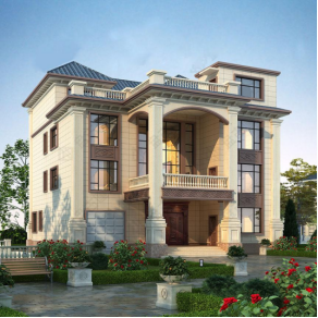 歐式風(fēng)格強(qiáng)調(diào)以華麗的裝飾、濃烈的色彩、精美的造型達(dá)到雍容華貴的裝飾效果。建筑基座、外立面、屋面均采用線條裝飾,線條簡潔。一層二層做門柱,突出羅馬柱式感覺。模仿石砌式的感覺,檐口西式線腳裝飾。建筑立面以御品黃為主色調(diào),建筑主體采用對稱式布局,加以紅色屋面點(diǎn)綴,端莊而不失活潑。
