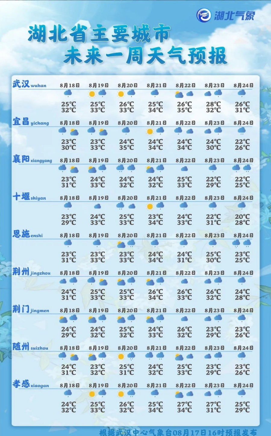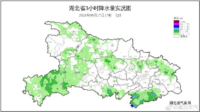 昨天(17日)省內(nèi)大部分地區(qū)出現(xiàn)分散性降水強(qiáng)降雨主要位于宜昌中南部、 恩施南部、十堰南部、襄陽中西部、神農(nóng)架西部、武漢南部、黃岡中部、咸寧南部、荊州西南部等地