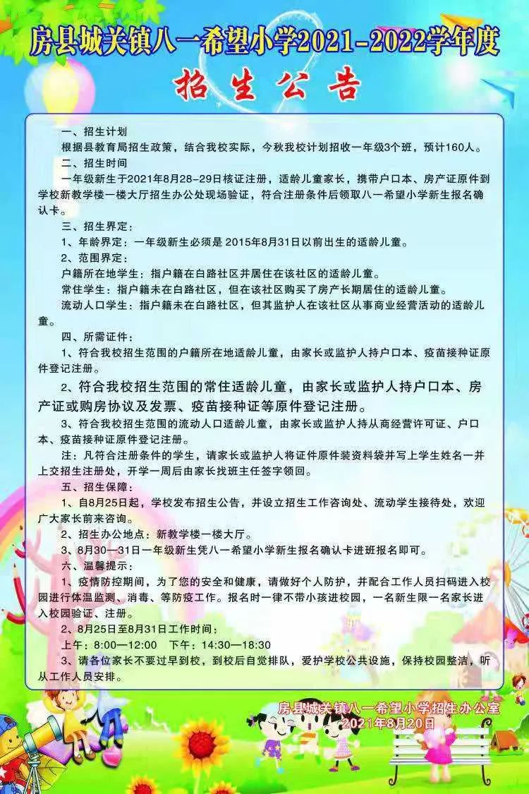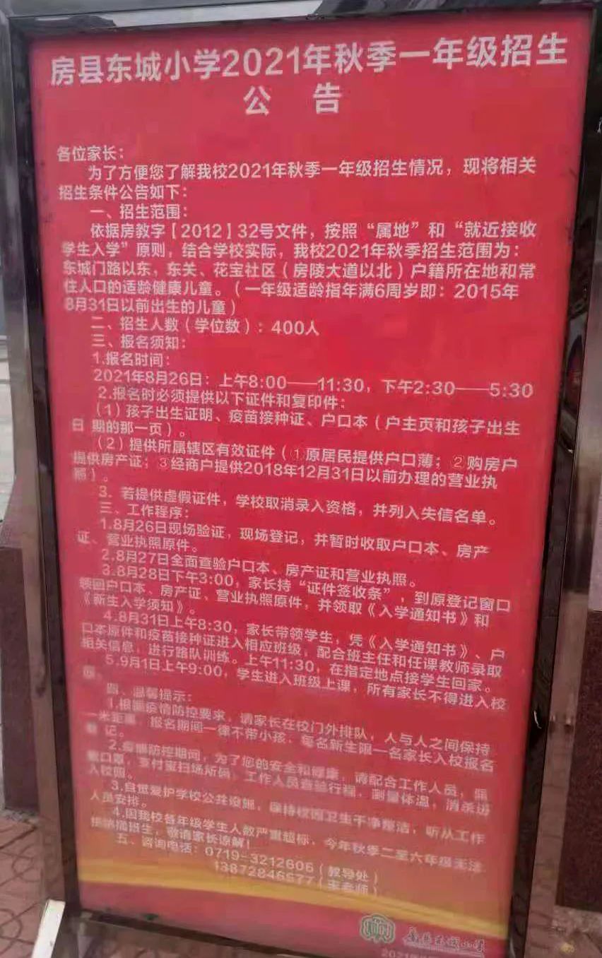 2021年房縣一年級招生范圍