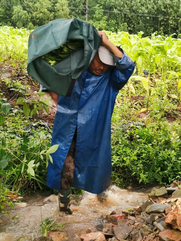 “以前,我們經常使用麻袋片,隨便丟棄的口袋作為包煙的輔助工具,雖然對煙葉有一定的保護作用,但是效果十分有限。在煙葉采摘、運輸、編煙的過程中,都很容易產生鮮煙葉的機械性損傷,出現煙葉青痕現象,不利于后期的煙葉收購與煙農增收工作。”西坪村駐村技術員饒崇宇聽見我們的談話,饒有興致地向我解釋道。
