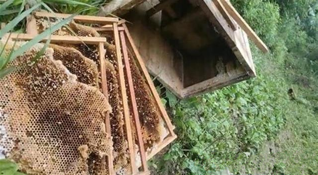 今日房縣網訊? 通訊員? 王超億、王海瓊? 報道:近日,緊鄰神農架的房縣上龕鄉崖蜜溝中蜂養殖基地,在上演現實版“熊出沒”,這讓養蜂專業戶劉祥志頭痛不已。最近正是采割蜂蜜的時節,濃郁的蜜香卻勾起棕熊的饞欲,劉祥志介紹說,來偷吃的棕熊至少有3只,經統計目前已經有100多箱蜂蜜被損壞,損失大致在10萬元左右。