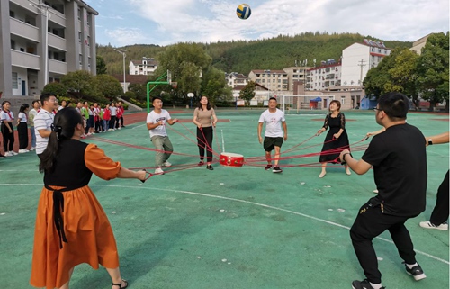 趣味運動會,快樂教師節。為了教師間的凝聚力和合作意識,讓老師們愉快而充實地度過教師節,9月9日下午,青峰小學組織了全體教職工的趣味活動。所有教師以年級組為單位,分成6個小組,每個人都參與到活動中,活動持續了一個多小時,校園內充滿了老師們的歡聲笑語。其中,同心協力,擊鼓顛球活動受到了大家的一致歡迎,老師們的熱情高漲。