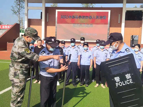 此次活動分兩個部分展開。在安保人員培訓儀式上,參訓學員代表作了現場發言,縣教育局、縣公安局相關工作負責人作了動員講話,希望全體參訓人員端正學習態度、遵守學習紀律,珍惜學習機會,扎實完成這次培訓。隨后,十堰市公安局警官訓練中心高級講師倪永祥對校園保安理論、法律法規進行了專題講解。在技能培訓實操課上,教官對安保人員進行了停止間轉法、敬禮跨立等專項訓練,并通過現場演示、學員互動等形式對保安器材實用、校園突發事件處理進行了詳細培訓,取得了良好的效果。