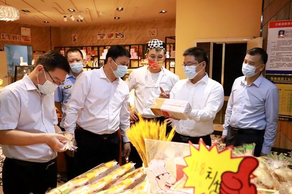在大潤發(fā)超市,謝曉鳴查看入口處顧客掃碼測溫登記情況,了解超市物資供 應(yīng)、食品安全和果蔬糧油等生活必需品價格等情況。要求商超要落實主體責(zé)任,把安全生產(chǎn)、食品安全和疫情防控工作作為頭等大事常抓不懈,做好國慶期間生活必需品供應(yīng)和價格穩(wěn)定。