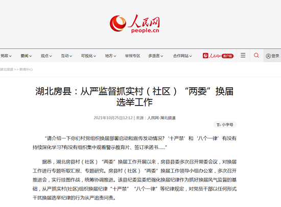 人民網(wǎng):房縣從嚴(yán)監(jiān)督抓實(shí)村(社區(qū))“兩委”換屆選舉工作