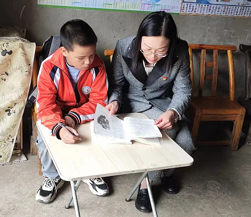 圖為劉志云輔導羅順虎作業(yè)