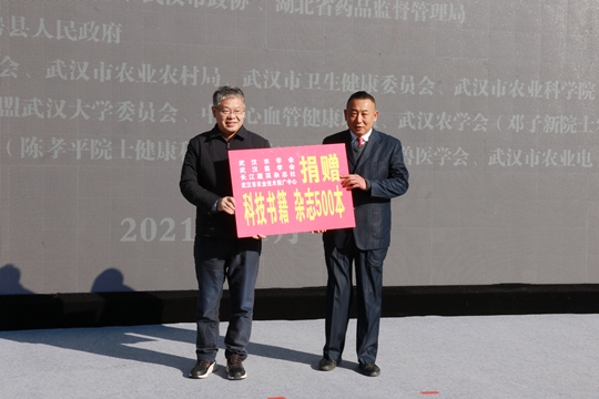 捐贈(zèng)儀式上,武漢農(nóng)學(xué)會(huì)、武漢醫(yī)學(xué)會(huì)、長(zhǎng)江蔬菜雜志社、武漢市農(nóng)業(yè)技術(shù)推廣中心共同向房縣科協(xié)捐贈(zèng)科技書(shū)籍500冊(cè);心馨心血管健康基金會(huì)向房縣衛(wèi)健局捐贈(zèng)動(dòng)態(tài)心電記錄儀100臺(tái)。