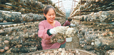 圖為11月22日,房縣紅塔鎮(zhèn)油坪村村民在采收小花菇。張啟龍 攝(影像中國)