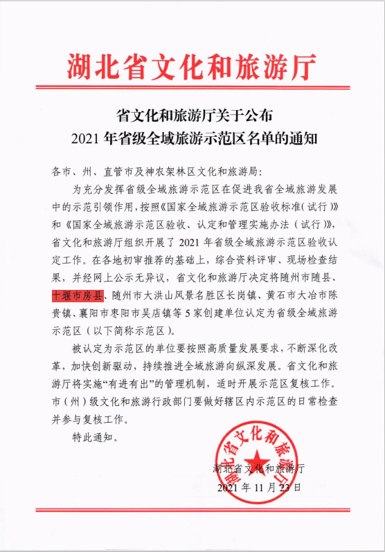 房縣喜獲省級全域旅游示范區(qū)稱號