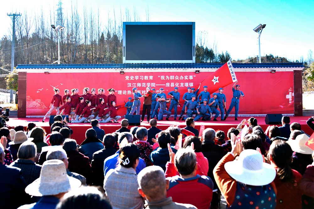 活動在精彩的文藝演出中拉開序幕,來自漢江師范學院的師生們為村民帶來舞蹈、獨唱、器樂演奏、踏板操、小品等形式豐富的節目,現場氣氛熱烈,掌聲、喝彩聲不斷。