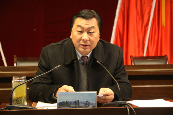 圖為縣委書記沈明云講話