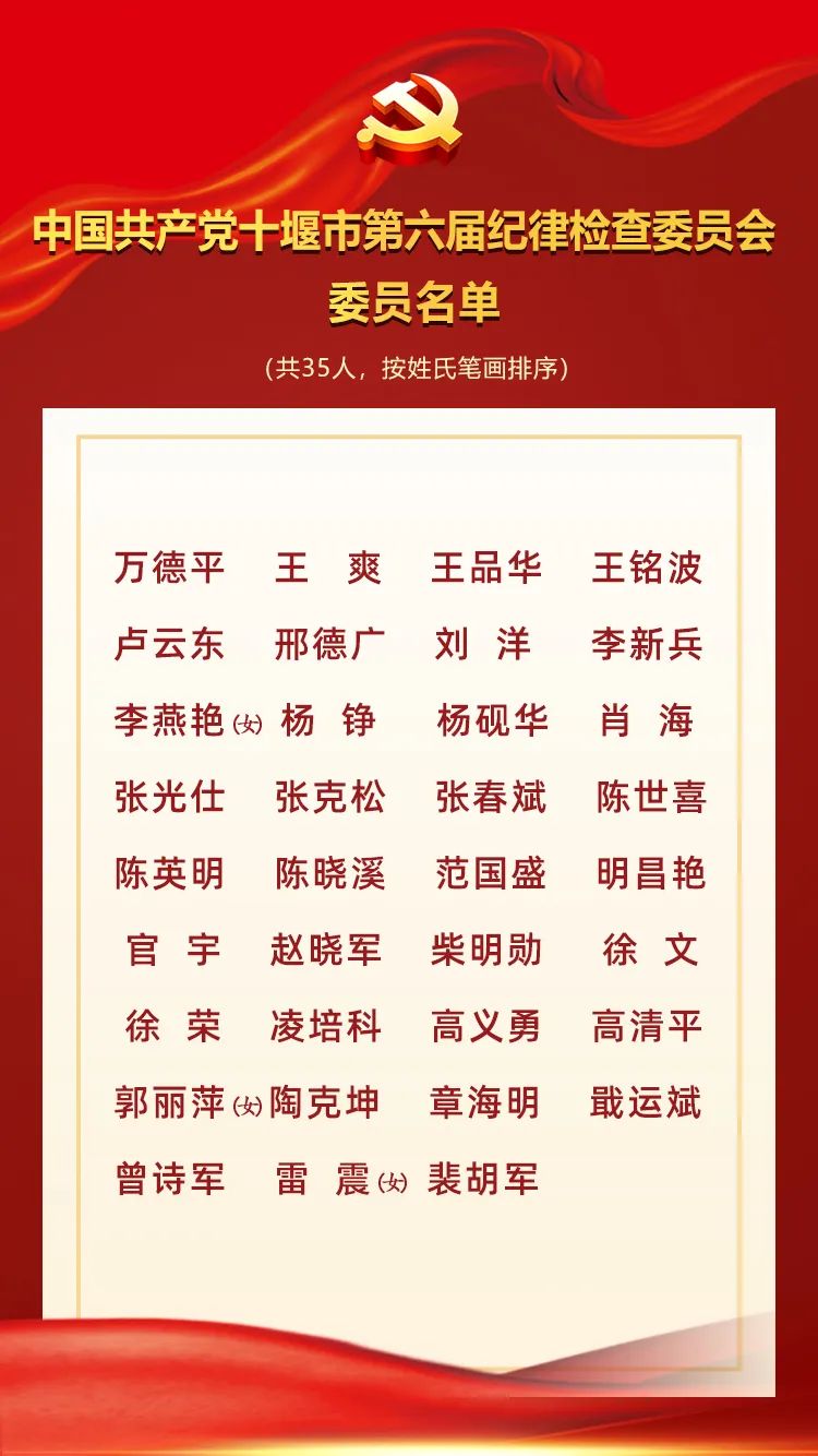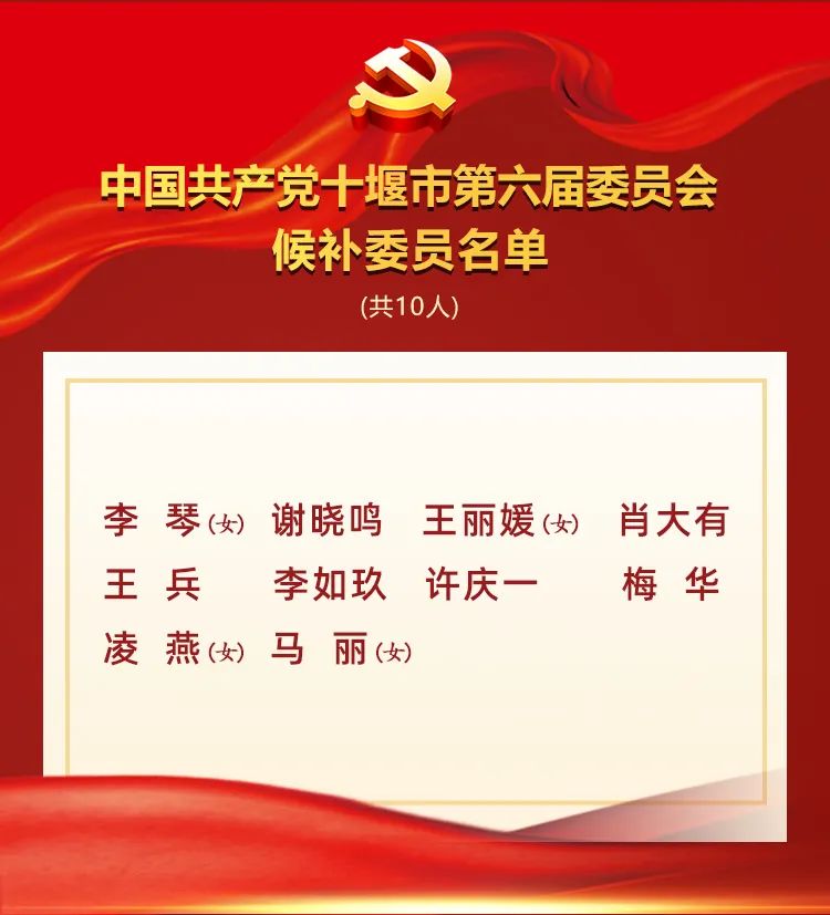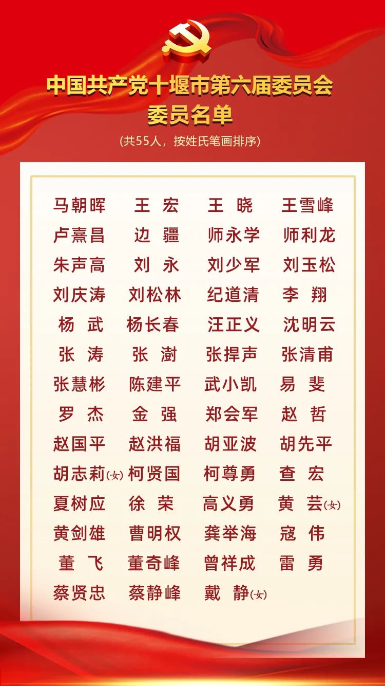 會議以無記名投票的方式,選舉產生了55名中國共產黨十堰市第六屆委員會委員、10名候補委員、35名市紀委委員。